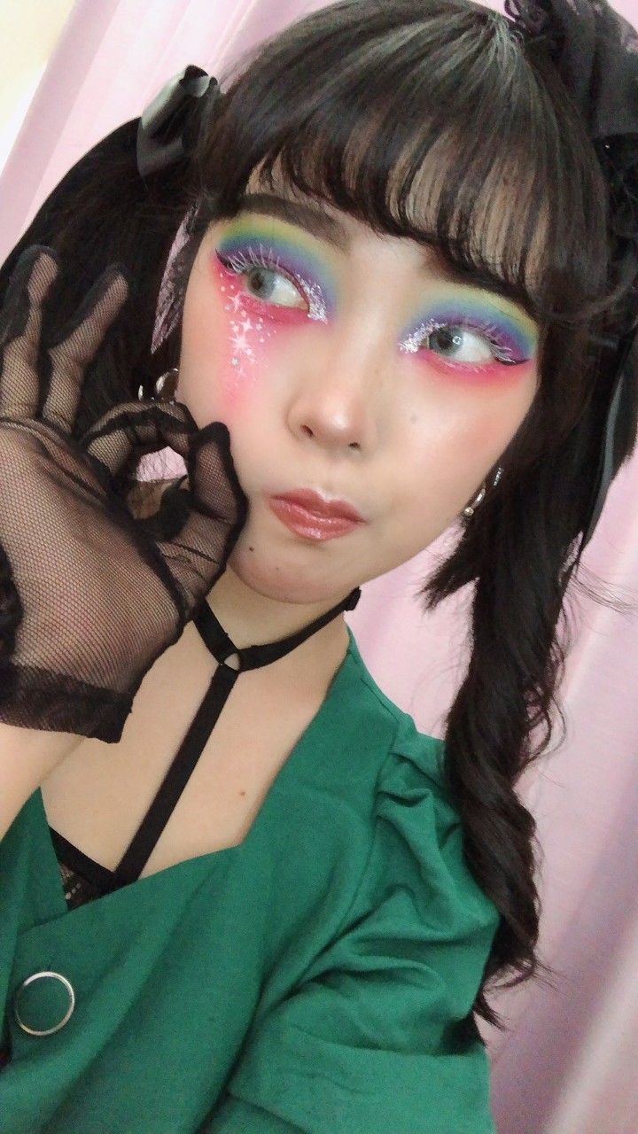 あ、でも結構がっつりしたメイクもすることがあって。レインボーメイクとか目からピンクの涙を流したりとか。